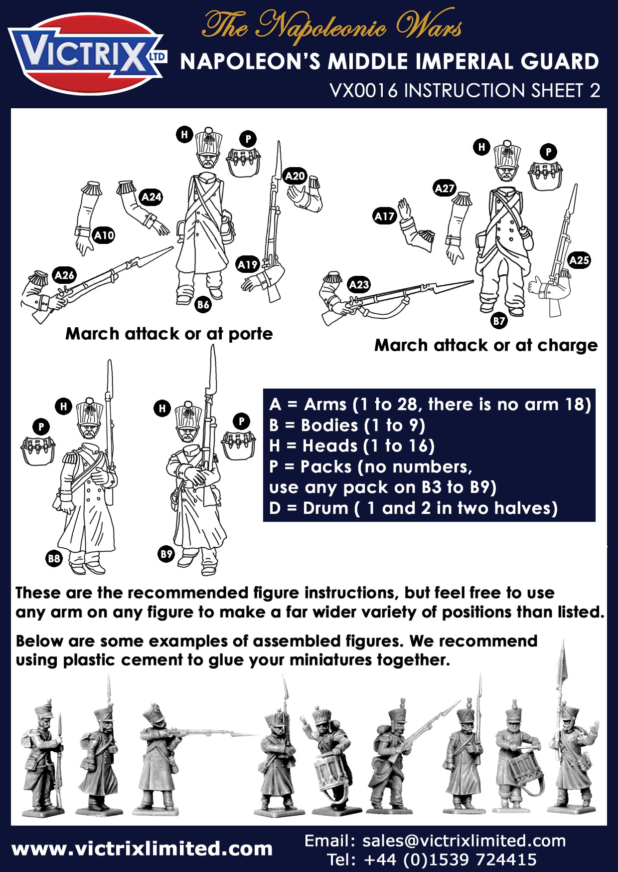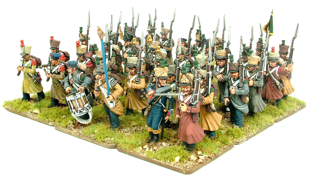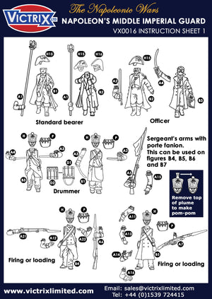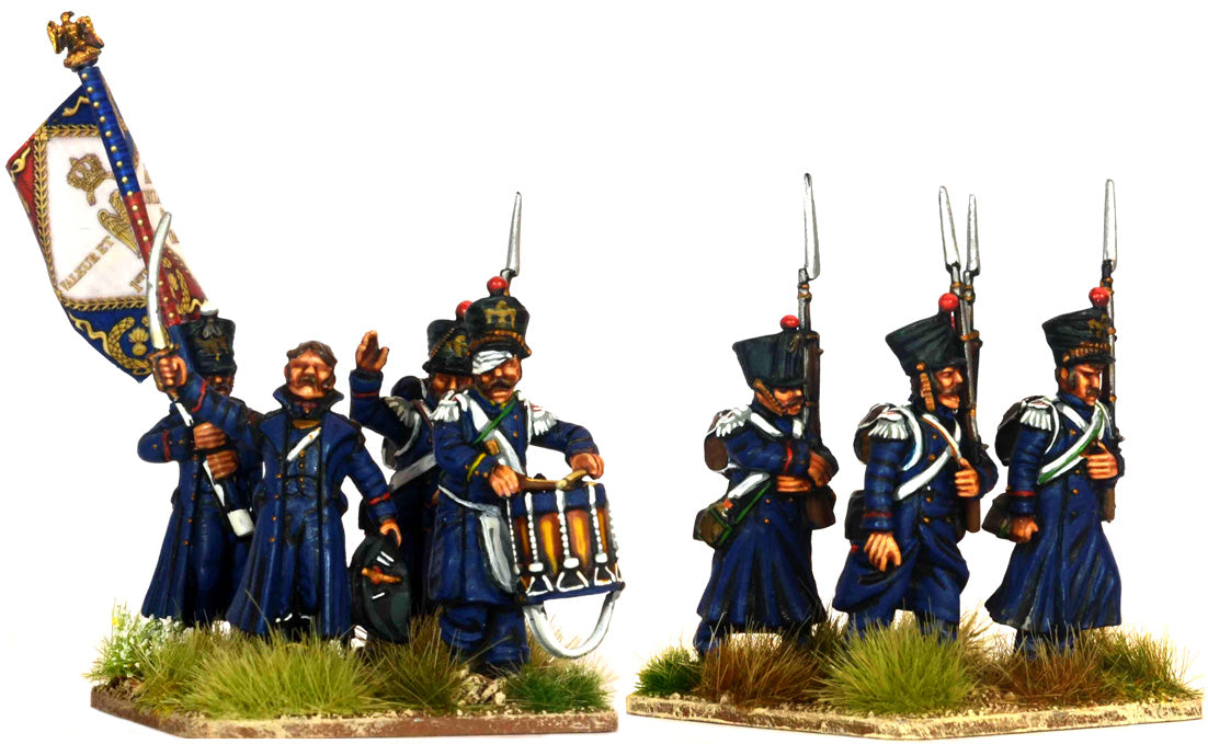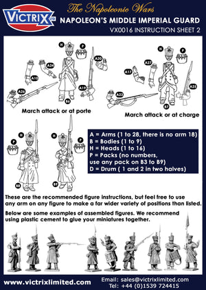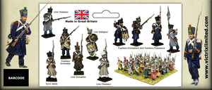 The set contains 60 figures represent Napoleon's Middle Guard, 'Fusiliers- Chasseuirs' and 'Fusiliers-Grenadiers' but can also be used for many other of Napoleon's Elite units in campaign dress: