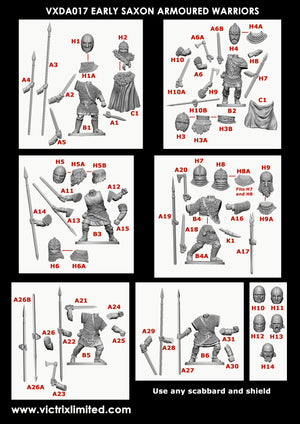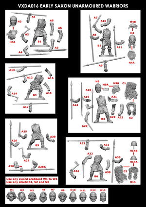 The set includes a wide mix of poses, weapons, shields, and head options, letting you build everything from elite warriors in helmets and cloaks to lightly equipped raiders and ranged support with bows. This set this provides everything you need to field a complete and Early Saxon Army.