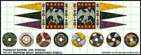 Frankish banner and shield designs , suitable for Merovingian, Capetian and Carolingian Franks.