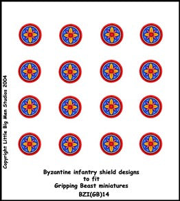 15MM Byzantine shield transfers to fit Khurrassan Miniatures.