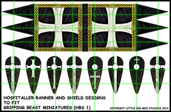 The is a banner and shieldsThe shield are to fit Gripping beast large Dark Age round shields.