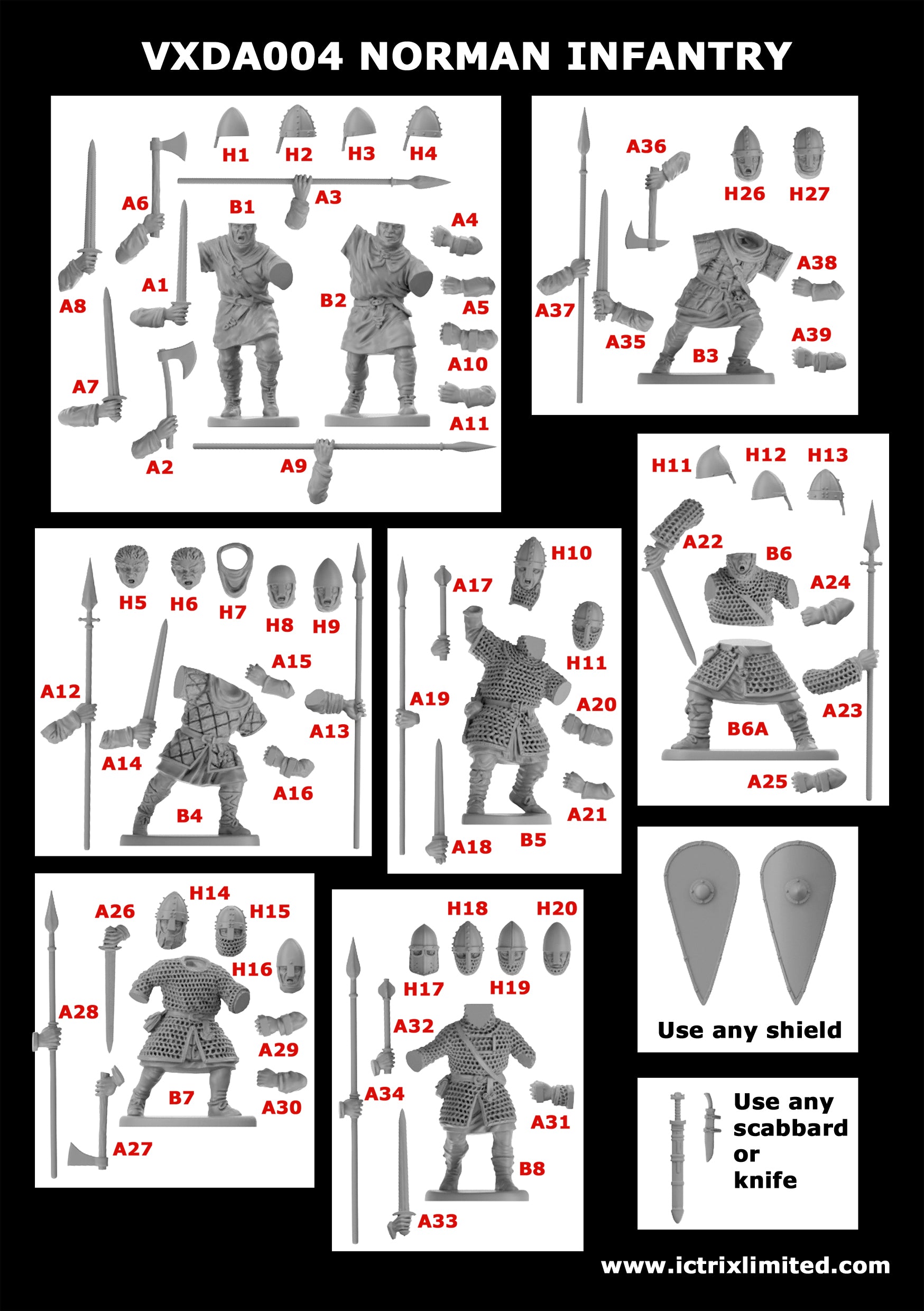 Cet ensemble exceptionnel de 60 figurines de Normands en plastique dur de 28 mm a des figures superbement détaillées et une myriade de pièces supplémentaires permettant des centaines d'options lors de la construction des chiffres.