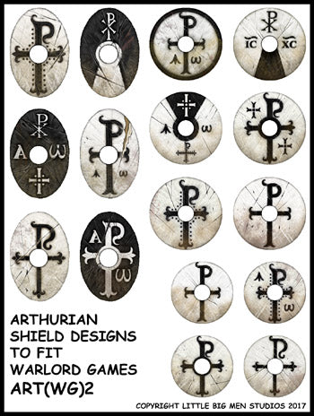 Arthurian designs to fit Warlord Games Miniatures Arthurian Oval and Round shields.