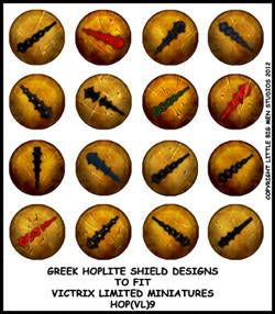 16 trasferimenti di scudi di opliti greci per adattarsi alla gamma limitata di Victrix degli antichi greci.