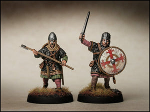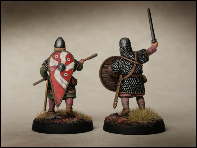 There is an assortment of shield shapes including round and kite shaped on the frames. There are enough to equip everybody with a round shield if you so wish, but the Later Saxons/Anglo Danes did use the Kite shield as well. This set is fully supported by LBMS shield transfers.