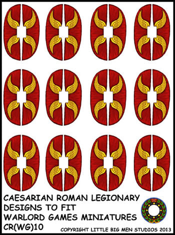 Shield designs to fit Warlord Games excellent new hard plastic Caesarian Roman legionaries. 12 shields plus a buckler for the standard bearer.