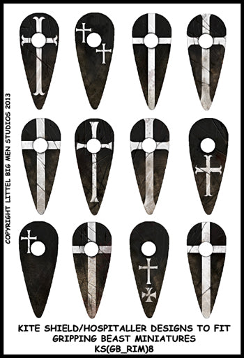 Hospitaller shield designs to fit Gripping Beast Norman kite shields with rims