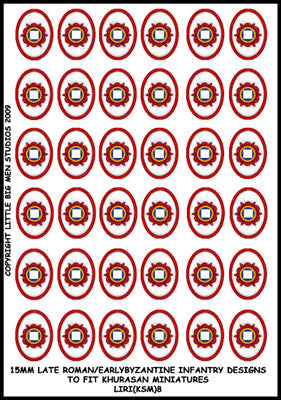 15mm Late Roman shield transfers to fit Khurrassan Miniatures.